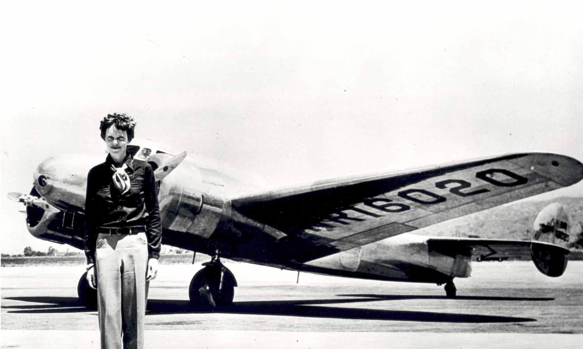 Amelia Earhart was an American aviator pioneer who set many flying records during her lifetime. She became the first woman and second person ever (after Charles Lindbergh) to fly solo across the Atlantic Ocean. In June 1937 she set out to circumnavigate the globe in a Lockheed 10E Electra together with flight navigator Fred Noonan. After more than 22,000 miles flewn they mysteriously dissapeared somewhere in the central Pacific Ocean. The plane wreckage was never found, and was officially declared lost at sea. Her disappearance remains one of the greatest unsolved mysteries of the twentieth century.